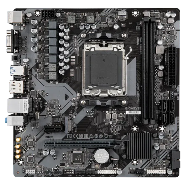 Стабильность и совместимость без переплаты! Материнская плата Gigabyte форм-фактора m-ATX на чипсете AMD A620 для процессоров AM5 обеспечивает надежную работу с базовым набором современных интерфейсов. Поддержка памяти DDR5 в 2.0 слотах позволяет собрать конфигурацию под любые задачи. Надежная основа для стабильной работы — проверено тысячами пользователей!