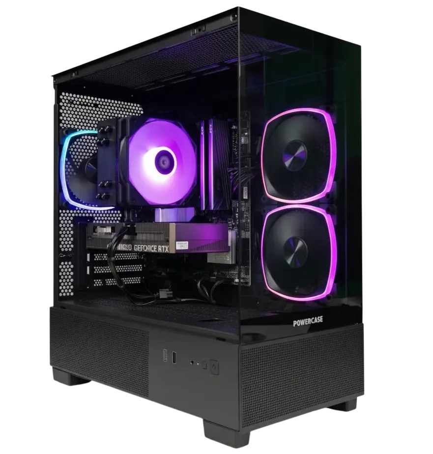 Топовые сборки требуют топового корпуса — Корпус Powercase форм-фактора Mini-Tower с поддержкой плат m-ATX вмещает видеокарты длиной до 405.0 мм, предоставляя простор для установки массивных систем охлаждения, нескольких накопителей и аккуратной прокладки кабелей. В комплекте 3 x 120 мм вентиляторов для эффективного охлаждения компонентов. Боковая панель с окном демонстрирует внутреннее содержимое сборки. Подсветка ARGB добавит индивидуальности и синхронизируется с остальными компонентами. Продуманная система управления кабелями обеспечивает чистоту сборки и улучшает циркуляцию воздуха. Раскройте потенциал охлаждения — температуры под контролем!