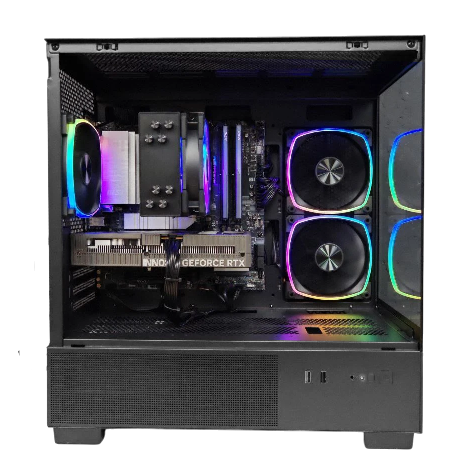 Игровой компьютер 990479 (Ryzen 7 5800X 3,8 ГГц/AMD B550/32 ГБ 3,2 ГГц/1024 ГБ SSD/RTX 4070 12 ГБ/Wi-Fi/650W/Powercase Vision Micro M3B Black TG Black)
