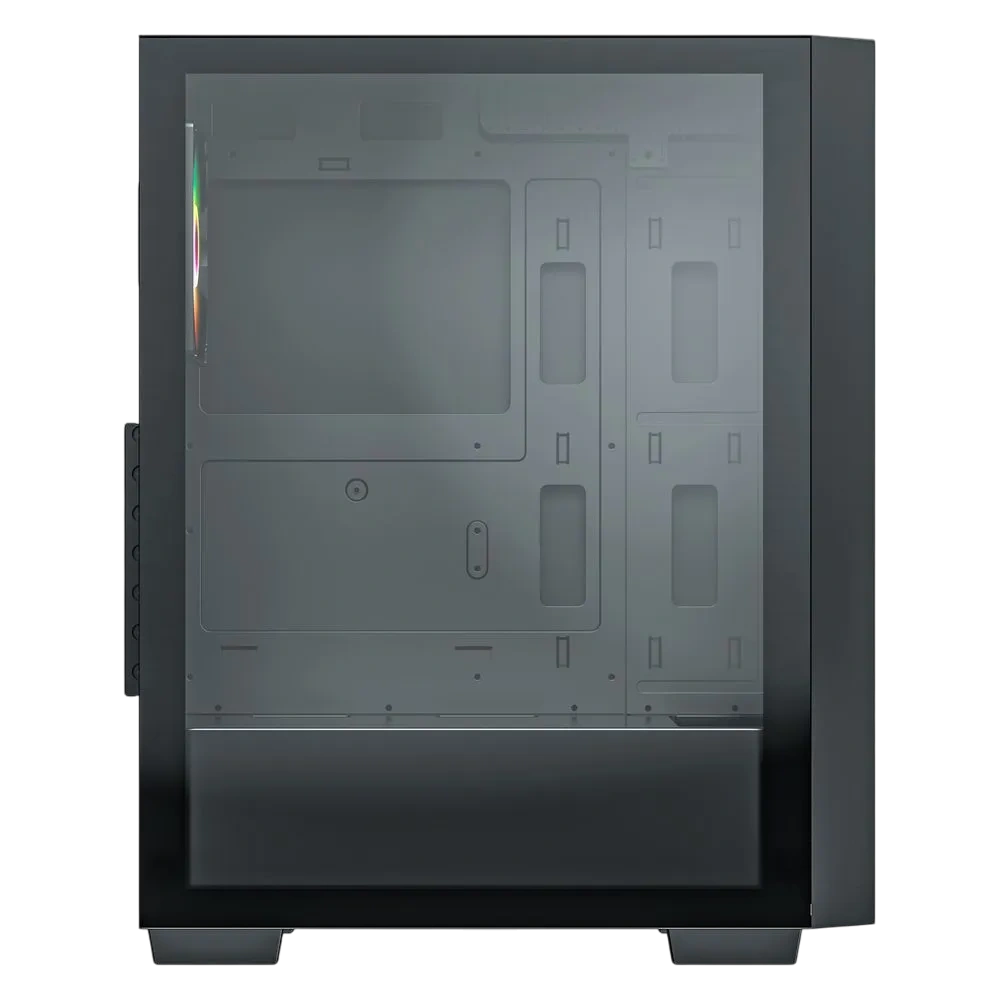 - Стеклянная боковая панель, поддержка ARGB подсветки, нижнее расположение блока питания