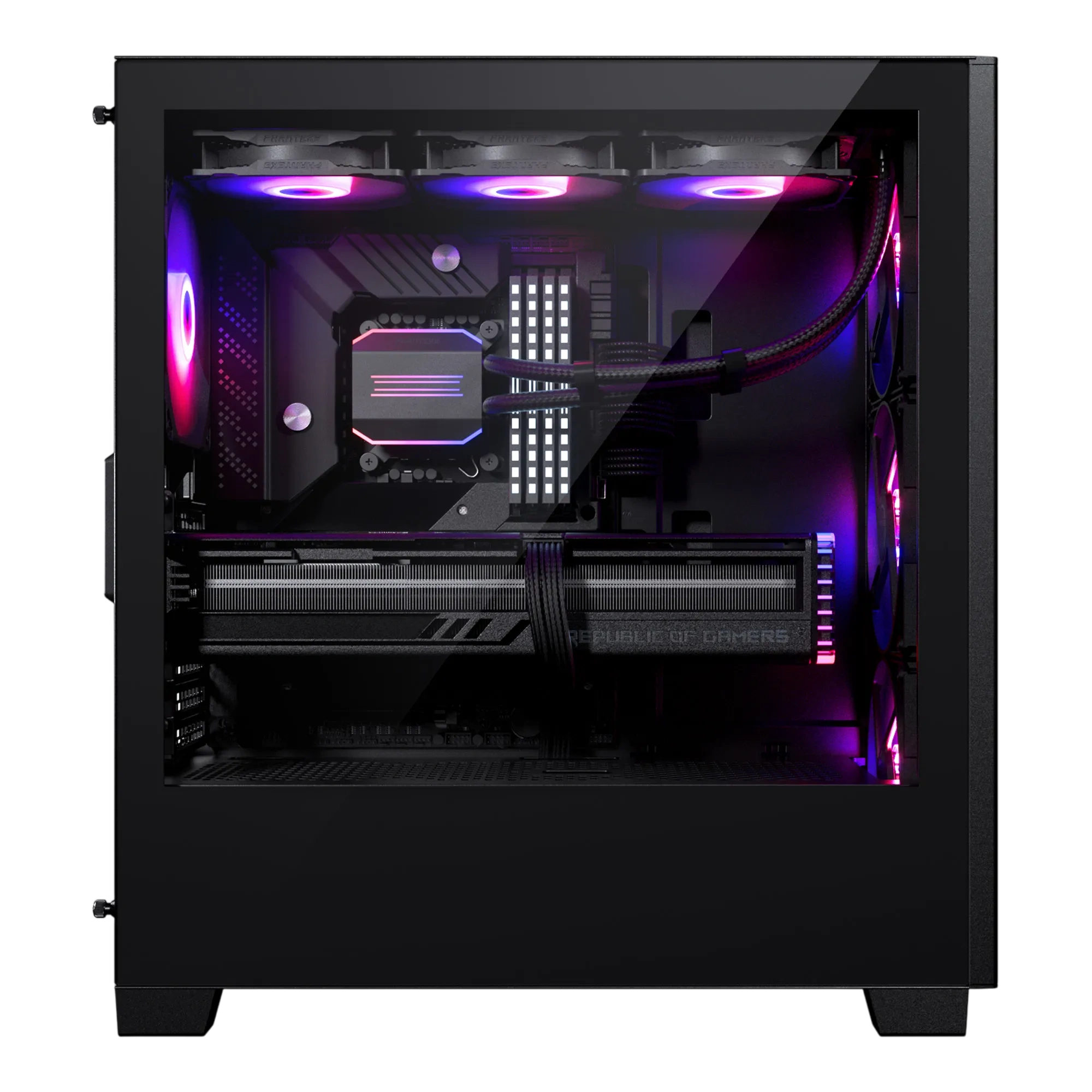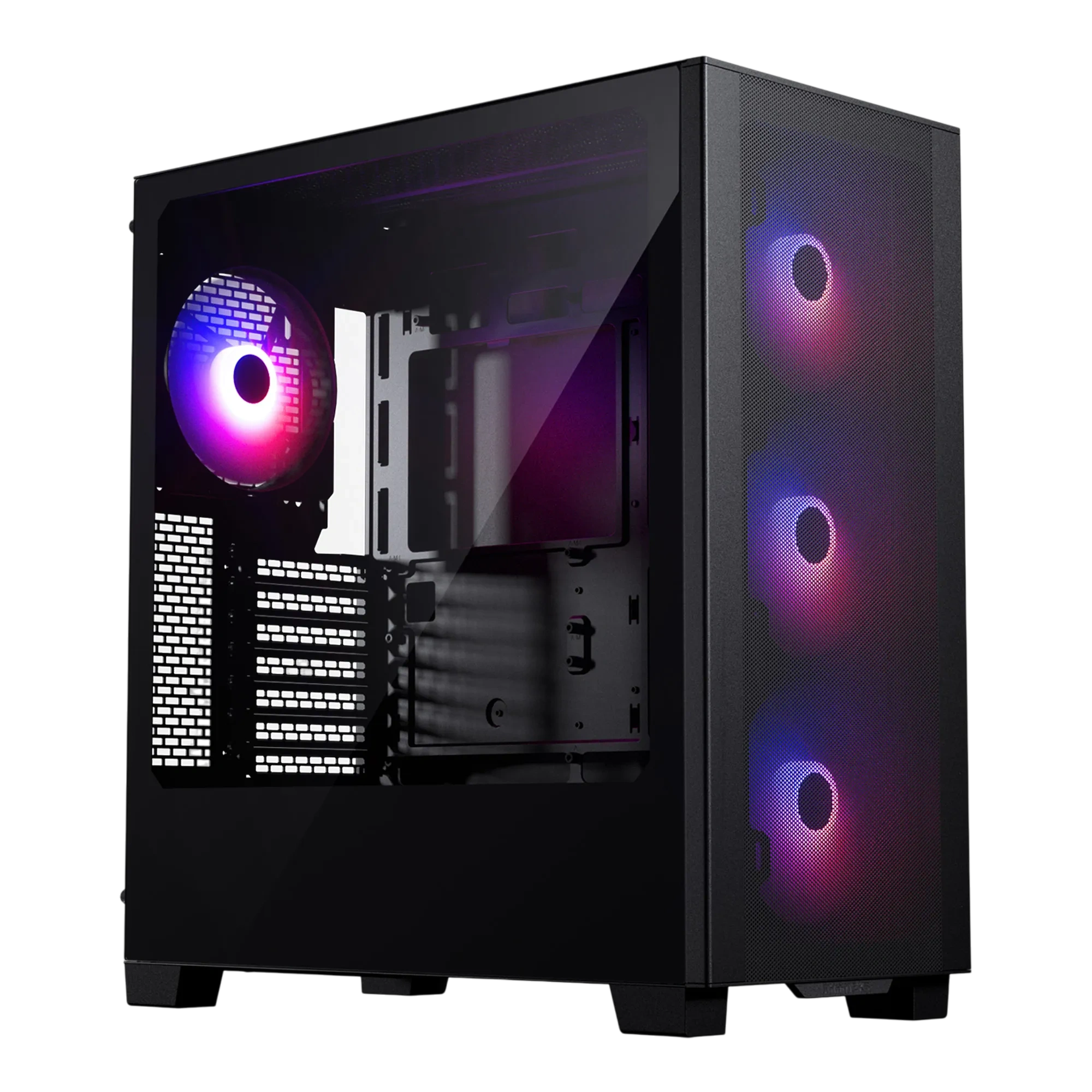 Просторный корпус для масштабных проектов — Корпус Phanteks форм-фактора Midi-Tower с поддержкой плат e-ATX вмещает видеокарты длиной до 415.0 мм, предоставляя простор для установки массивных систем охлаждения, нескольких накопителей и аккуратной прокладки кабелей. В комплекте 4 x 140 мм вентиляторов для эффективного охлаждения компонентов. Боковая панель с окном демонстрирует внутреннее содержимое сборки. Подсветка ARGB добавит индивидуальности и синхронизируется с остальными компонентами. Продуманная система управления кабелями обеспечивает чистоту сборки и улучшает циркуляцию воздуха. Создайте шедевр без ограничений — пространство для воплощения идей!