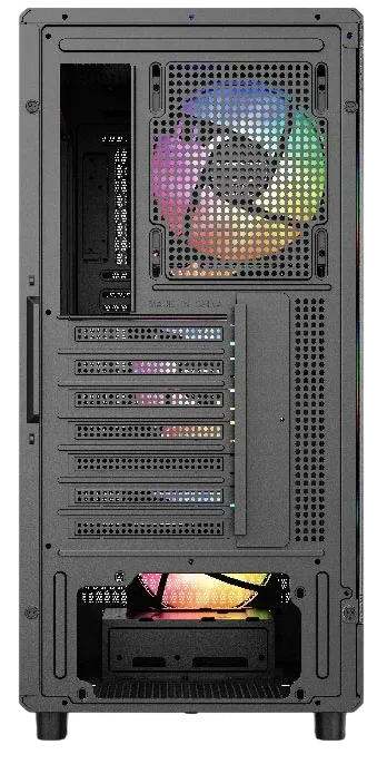 - Стеклянная боковая панель, поддержка видеокарт до 380 мм, поддержка процессорных кулеров до 160 мм, поддержка СЖО 240 мм спереди, 120 мм сзади