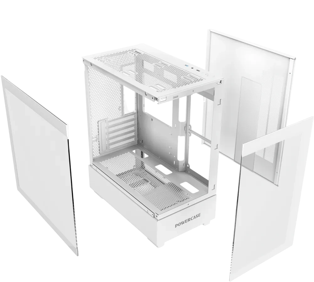 Идеальная основа для игровой сборки среднего уровня — Корпус Powercase форм-фактора Midi-Tower с поддержкой плат m-ATX вмещает видеокарты длиной до 340.0 мм, обеспечивая достаточно места для современных видеокарт и эффективного воздушного потока. Боковая панель с окном демонстрирует внутреннее содержимое сборки. Продуманная система управления кабелями обеспечивает чистоту сборки и улучшает циркуляцию воздуха. Соберите стильную и производительную систему — взгляды прохожих гарантированы!