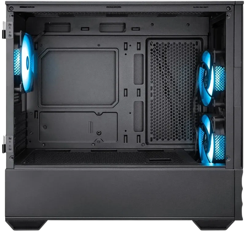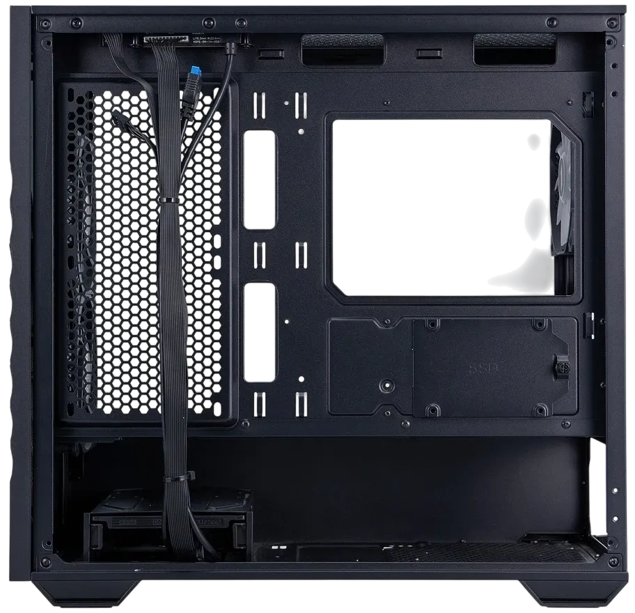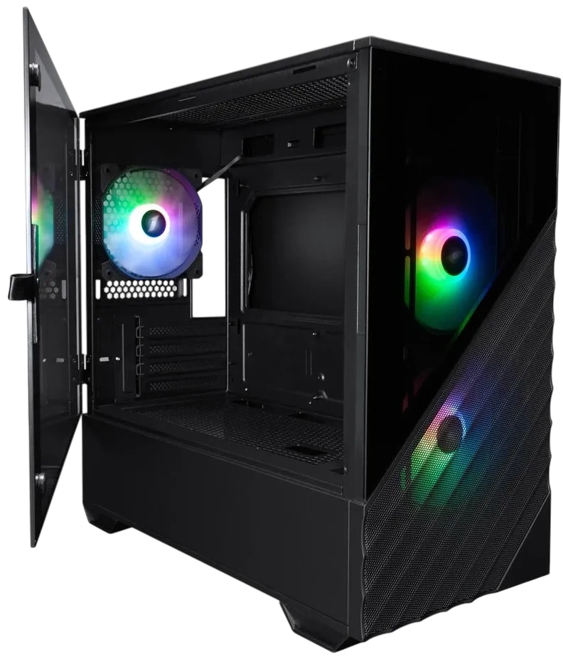 - Стеклянная боковая панель, поддержка ARGB подсветки, нижнее расположение блока питания