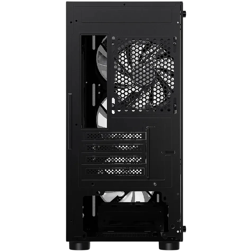 - Стеклянная боковая панель, поддержка видеокарт до 350 мм, поддержка блоков питания до 180 мм, съемные пылевые фильтры, поддержка 2 x 2.5" и 2 x 3.5" накопителей
