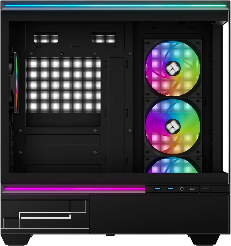 - Стеклянная боковая панель, поддержка ARGB подсветки, вентиляторы предустановлены