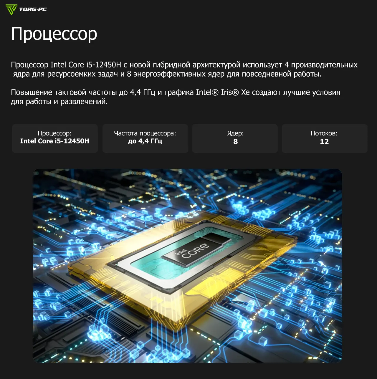 Процессор: IntelCore i5-12450H 12-го поколения.