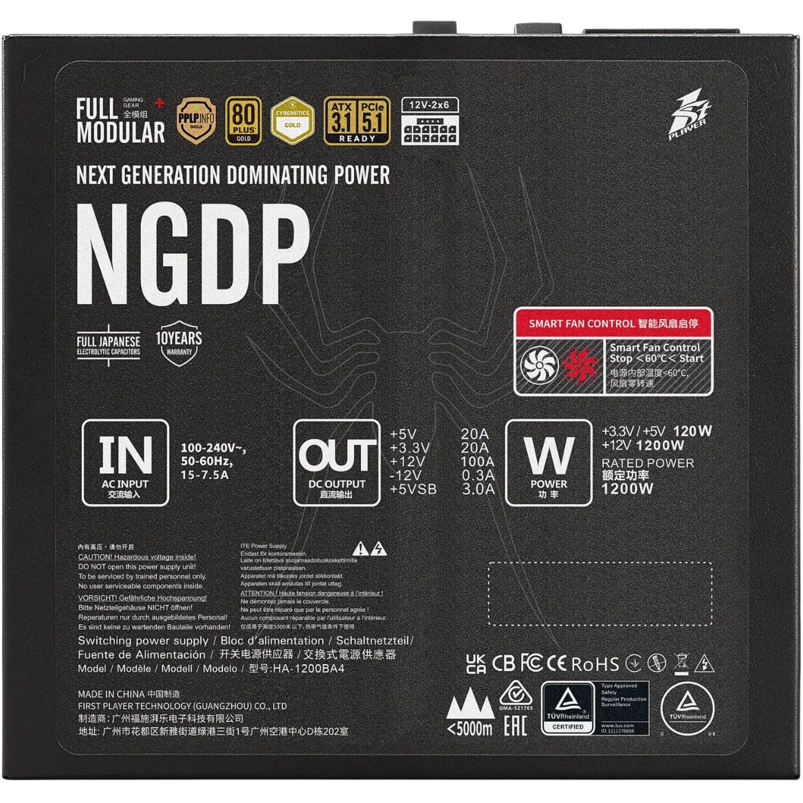 Блок питания 1STPLAYER 1200W NGDP GOLD Black (HA-1200BA4) 16 Pin (PCIe 5.1 Connector Cable Details)
