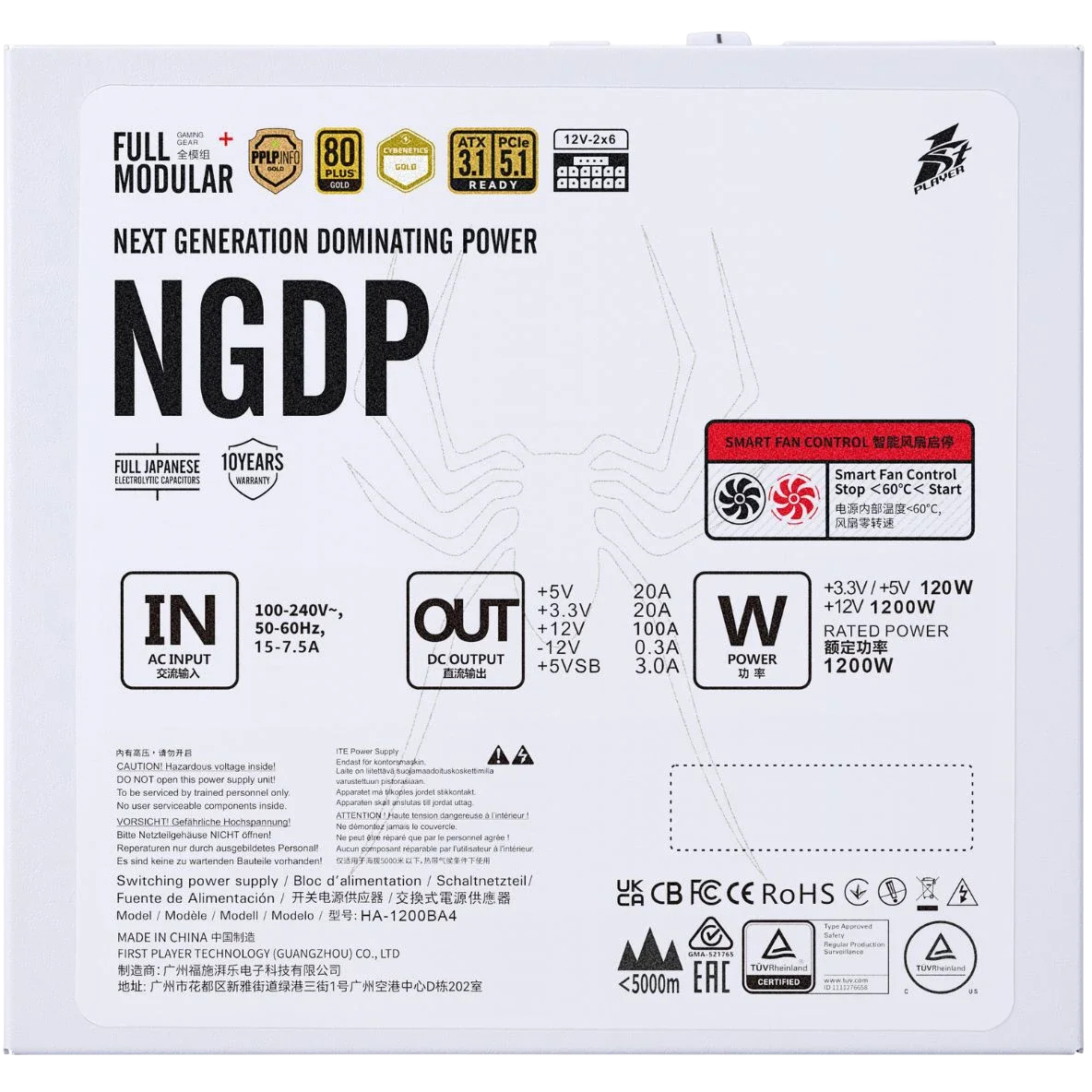 Блок питания 1STPLAYER 1200W NGDP GOLD White (HA-1200BA4-WH) 16 Pin (PCIe 5.1 Connector Cable Details)